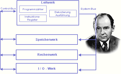 * 폰노이만의 프로그램 내장 방식 : 프로그램을 구성하는 명령어들을 임의접근이 가능한 메모리 상에 순차적으로 배열하고, 동시에 조건 분기를 무제한적으로 허용