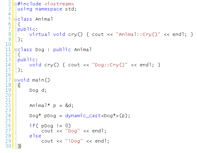 Dog* pDog = dynamic_cast<Dog*>(p);