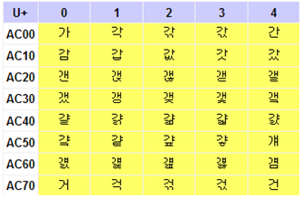 - 각 언어들이 어느 영역에 있는지 표시함(한글의 경우 AC근처부터 D7까지 표현됨)