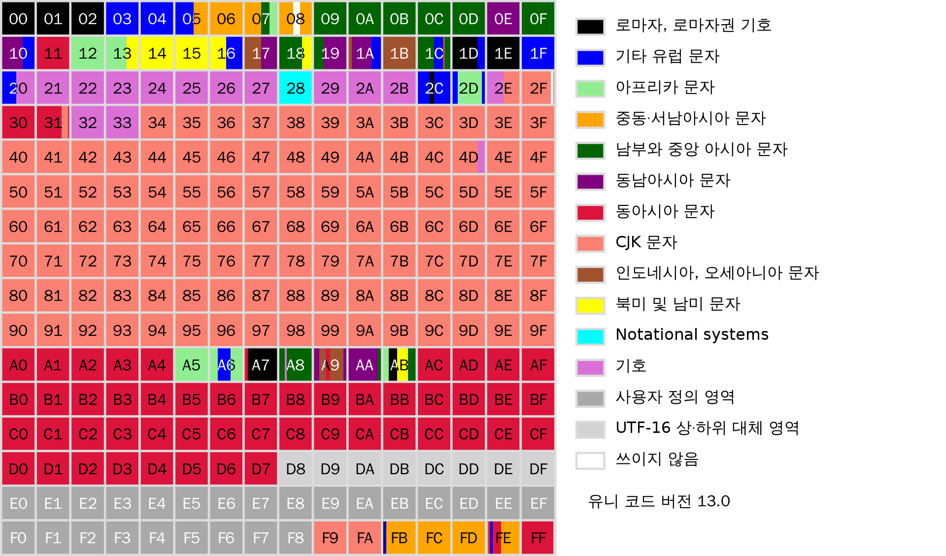 - 유니코드가 표현하는 언어들에 대한 구성도