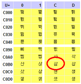 삼 = U+C0B0C