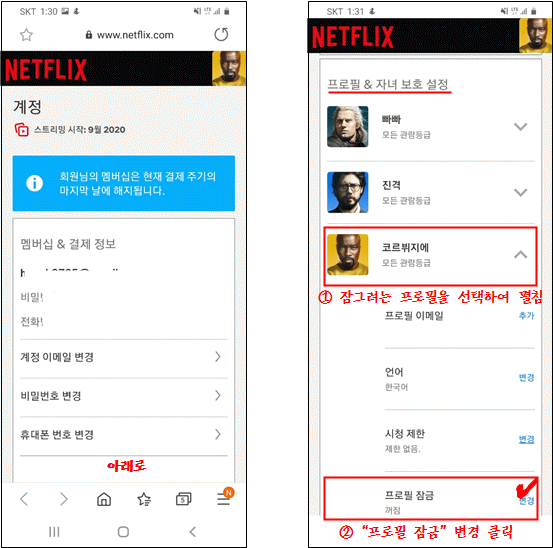 넷플릭스 프로필 잠금 / 계정 잠금 설정방법