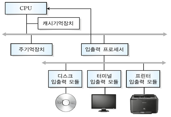 - 입출력 종류 및 개수가 많고 입출력 처리가 많은 경우 시스템 성능이 떨어지므로 CPU의 대리 역할을 하는 IOP를 이용