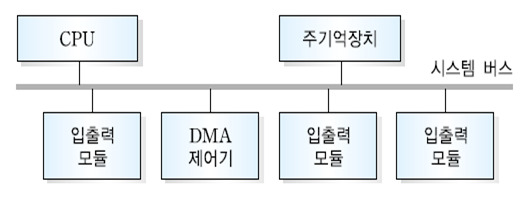 DMA 제어기가 CPU, 주기억장치, 입출력 모듈과 함께 시스템 버스에 직접 연결된 형태의 입출력 방식