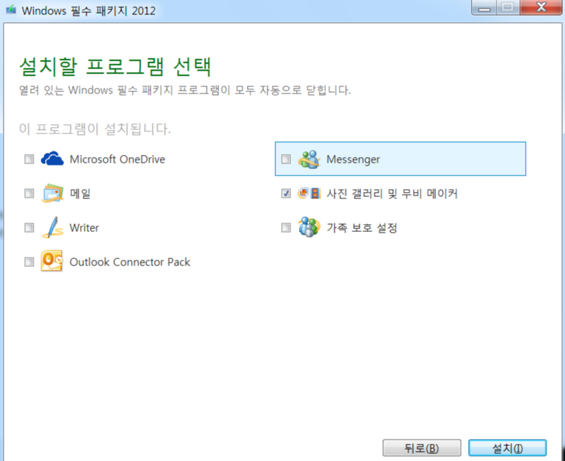 Windows 2012 필수 패키지 파일이다. 설치할 프로그램 선택에서 윈도우 무비메이커만 선택해서 다운 받으면 된다.