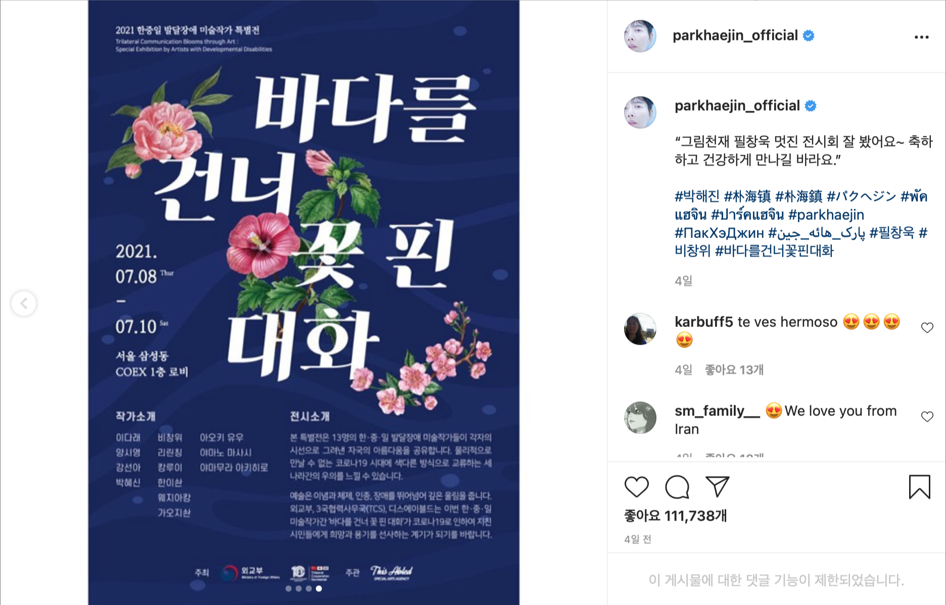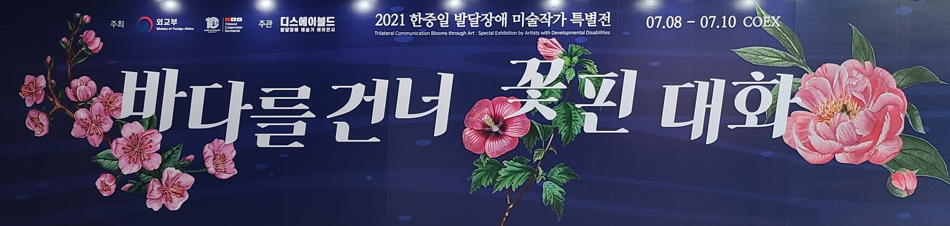 2021 한중일 발달장애 미술작가 특별전인 "바다를 건너 꽃 핀 대화" 특별전을 다녀왔습니다. 7월 8일부터 10일까지 코엑스에서 열린, 외교부가 주관하고 디스에이블드가 주최한 전시입니다.