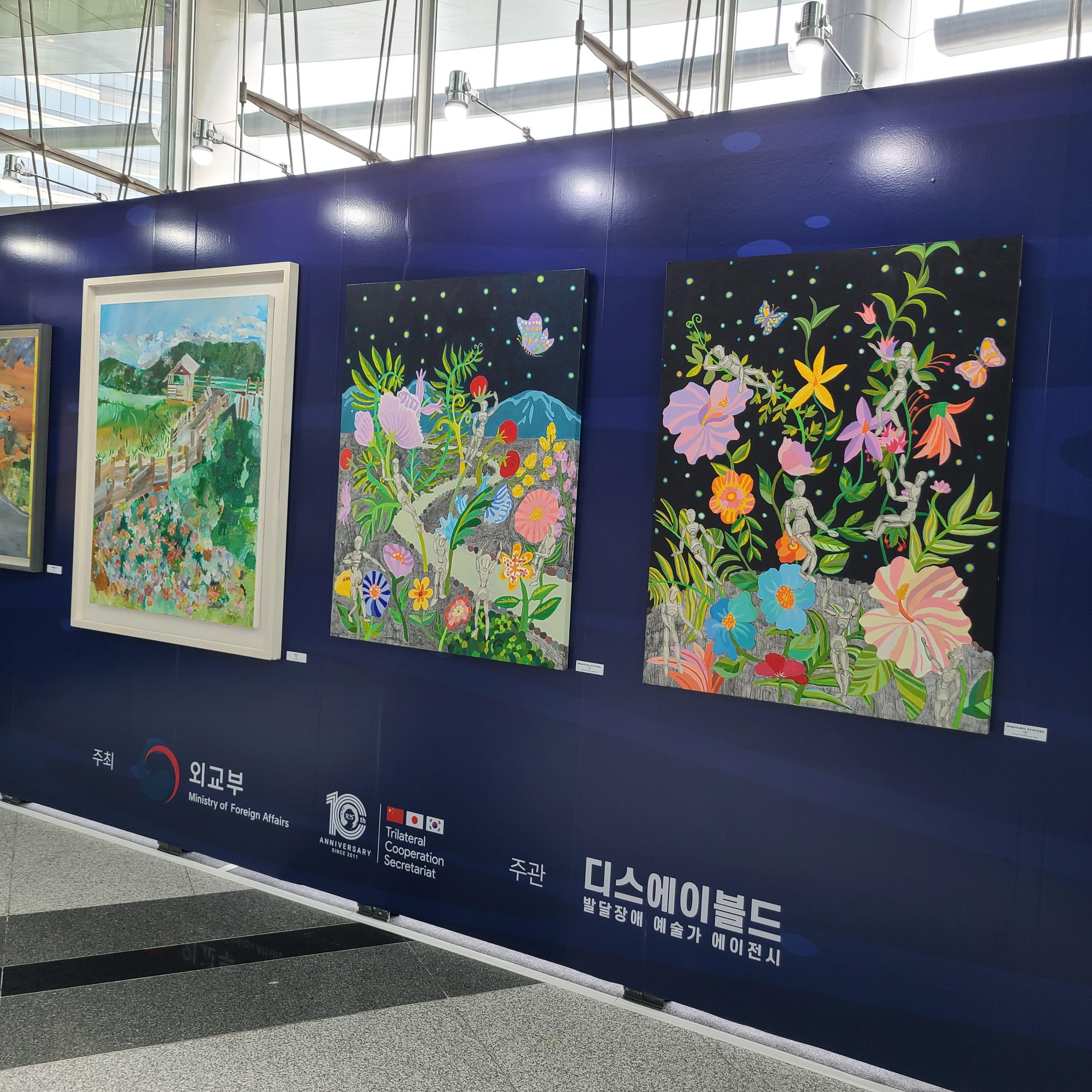 더디지만 꾸준히 재능을 갈고 닦아 온 발달장애 작가들의 그림을 전시를 통해 한중일 3국 협력의 희망적 메시지를 전달하고자 하는 외교부의 기획력만큼 13명의 한중일 발달장애 작가가 각자의 시선으로 그려낸 자국의 아름다움이 돋보이는 전시였습니다.