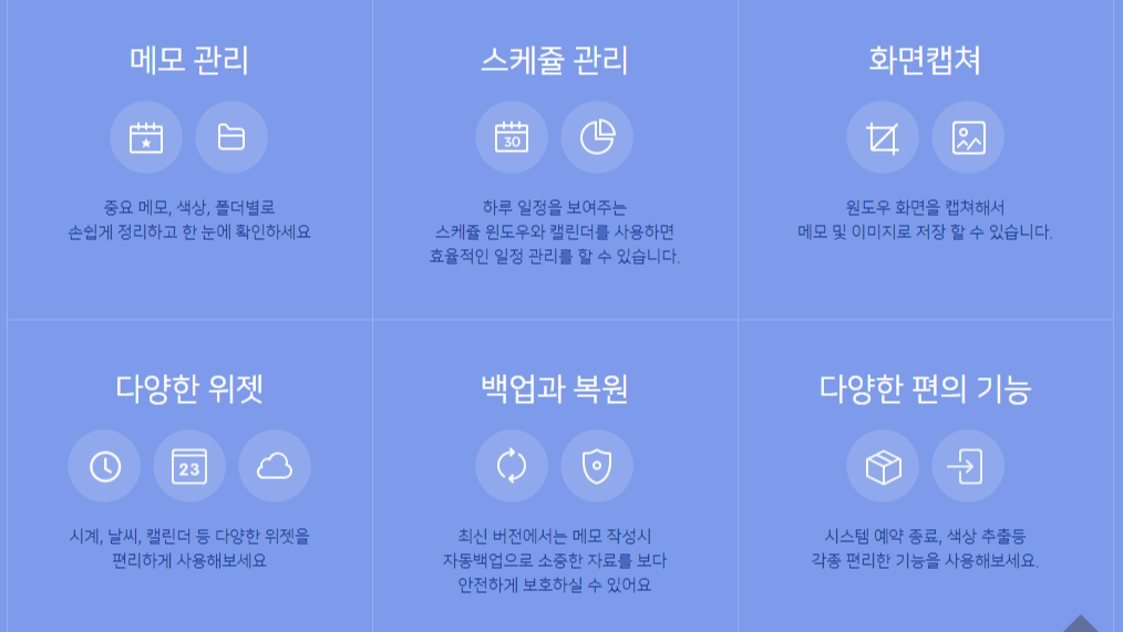 - 메모 기능 : 포스트잇 스타일의 메모로 편리하게 사용이 가능합니다.