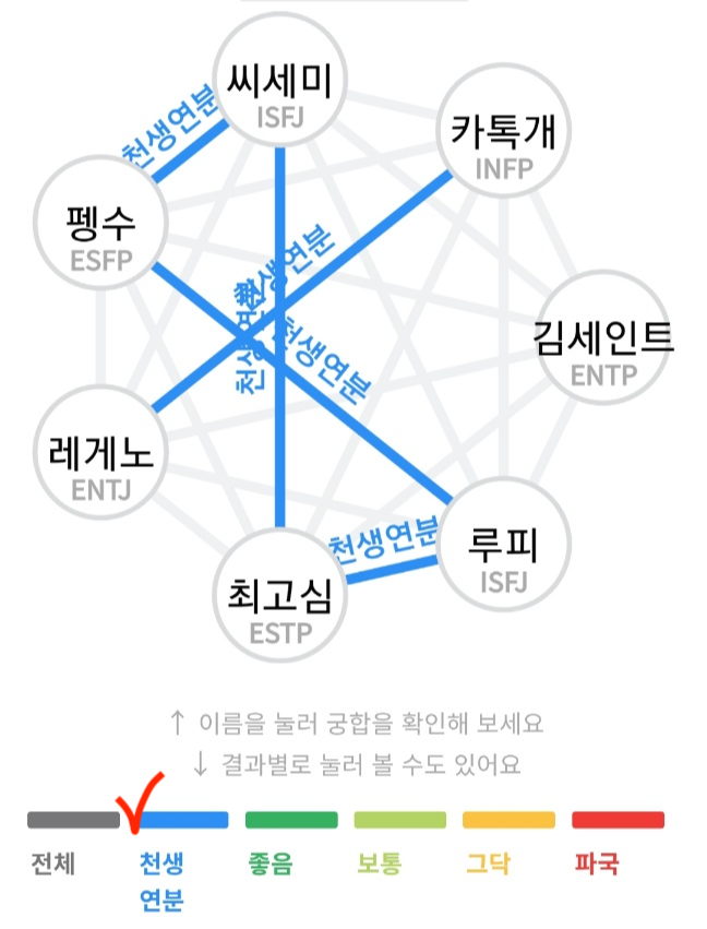 천생연분/좋음/보통/그닥/파국 을 누르면 해당 관계만 볼 수 있어요