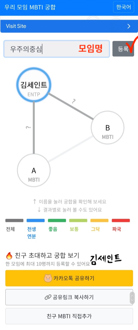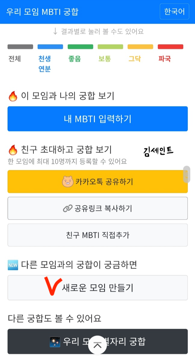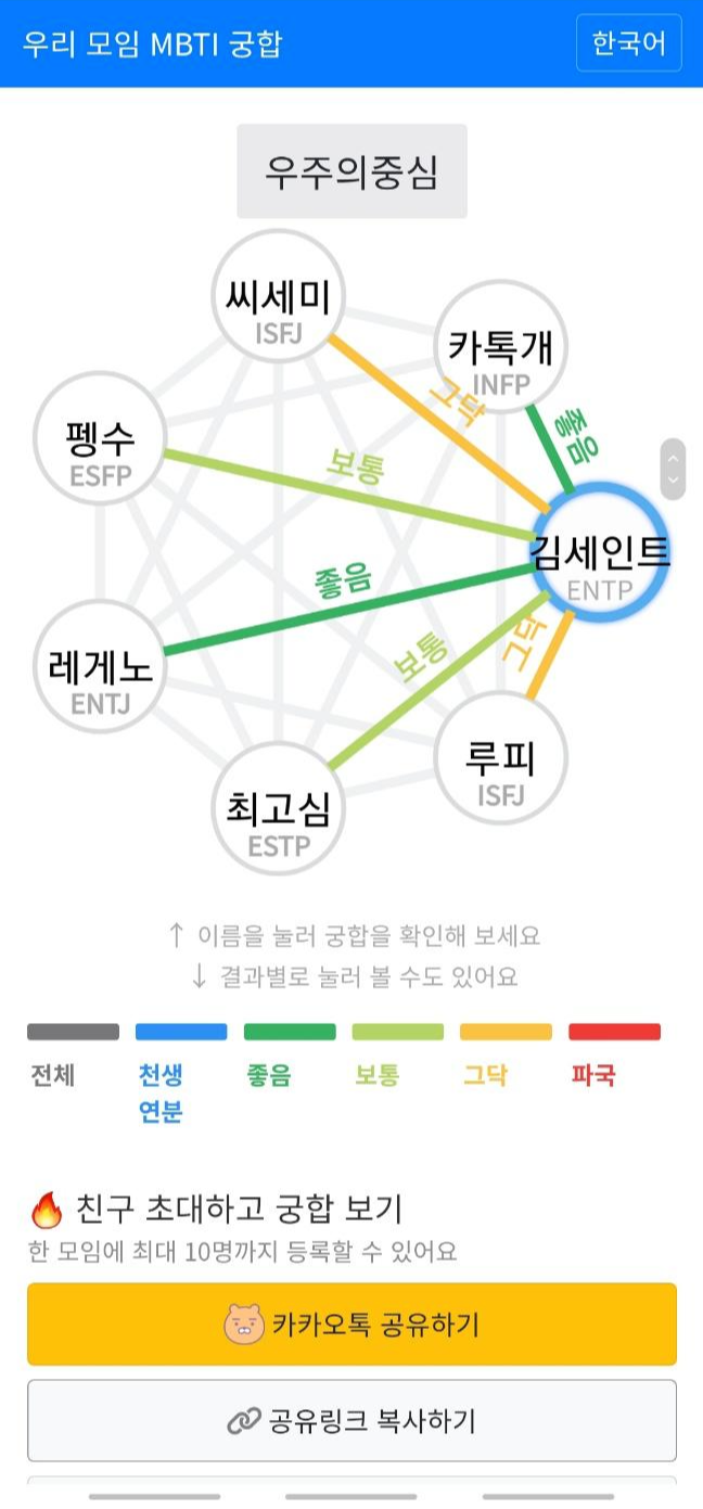 바로 우리 모임 MBTI궁합 사이트에서 볼 수 있습니다.