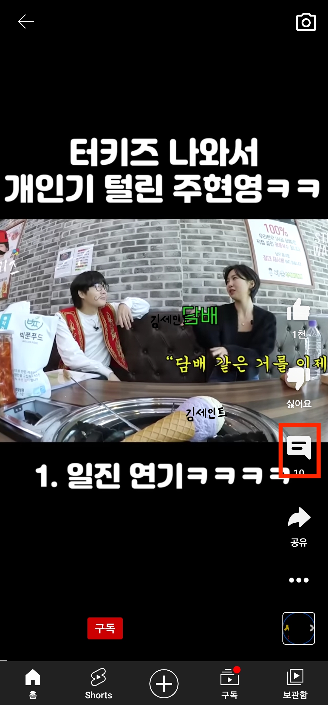 숏츠 댓글을 달고싶은 마음에 댓글버튼을 누르면 꺼집니다🙉