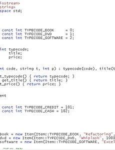타입 코드(type code)라는 것은 오브젝트의 종류를 표현하는 값입니다. 어떤 프로그램이 서적, DVD, 소프트웨어를 다룬다고 가정합니다. 그리고 이 상품의 종류를 표현하기 위해 다음과 같이 서적 = 0, DVD = 1, 소프트웨어 = 2라고 int형 값을 할당한다고 하면,이 때, 1, 2, 3 이라는 값이 타입 코드가 됩니다. 그러나타입코드가 int와 같은 기본형이면 문제가 생깁니다. Item* book2 = new Item(1000, "Jobs", 3000);Item* software2 = new Item(Payment::TYPECODE_CREDIT, "Word", 3000);와 같은 코드도 문제 없이 돌아가는데요. 타입 코드의 범위 이외의 값인 1000도, item 타입이 아닌 payment 타..